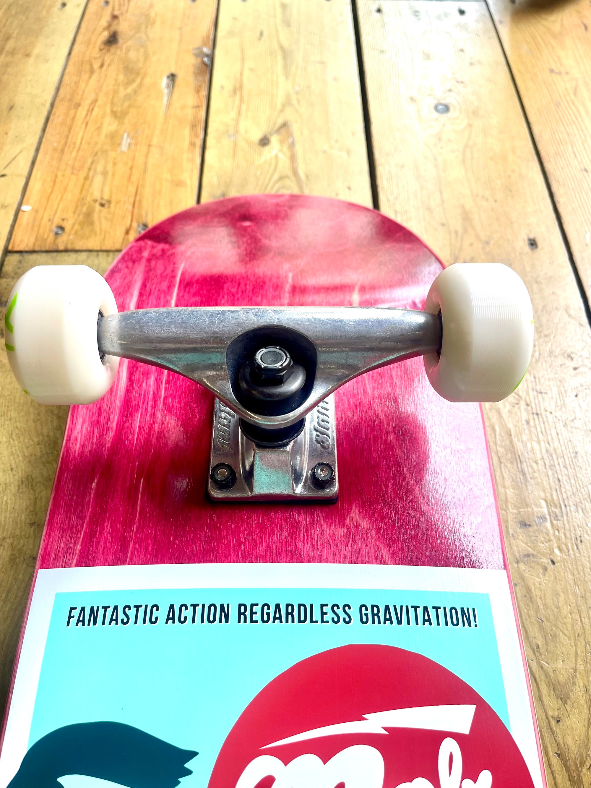 TABLA FABRICADA CON 7 LAMINAS DE MADERA DE MAPLE CANADIENSE CON COLA DE EPOXY CON CONCAVO MEDIO CON CONSTRUCCION TOUGH CATS PARA UN POP DURADERO. A PARTE DE LA CALIDAD DE LA MADERA EN ERT OS HEMOS HECHO UN MONTAJE CUSTOM CON DE CALIDAD Y MONTA UNOS EJES SLANT CON GOMAS EN DUREZA MEDIA, RUEDAS DARKSTAR CON COJINETES DARKSTAR ABEC 7.